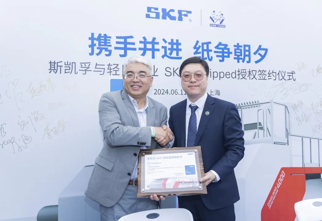6月11日,斯凱孚與上海輕良在上海成功舉辦SKF Equipped授權簽約儀式。斯凱孚許可上海輕良在其生產的裝配有SKF產品的紙機上使用”SKF Equipped”標識。這意味著雙方除在技術、產品等方面的戰略合作外,在品牌價值提升上也在進行深度合作,共同開啟了追求卓越、創新發展的全新篇章。